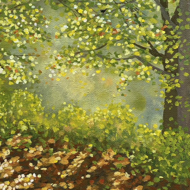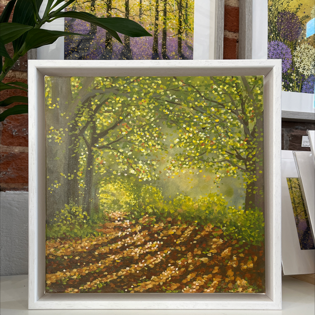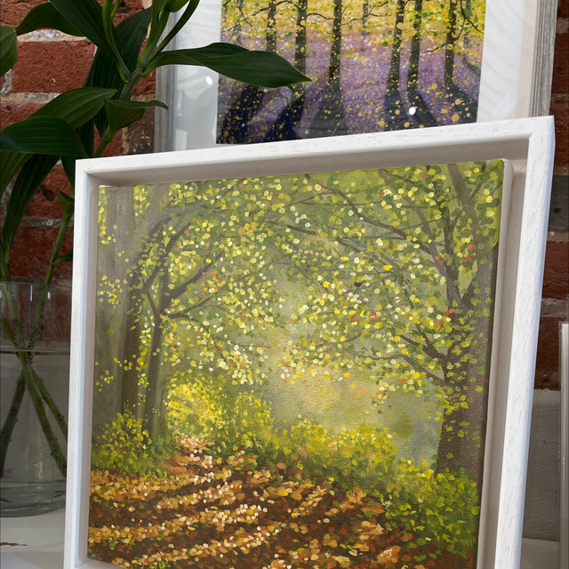 A 30cm x 30cm painting of leafy lane.