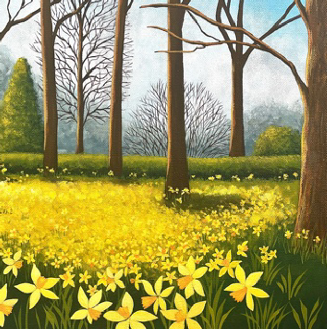 A Lovely springtime scene of daffodils at Kingston Lacy National trust Dorset. Bare trees and varying evergreen foliage.